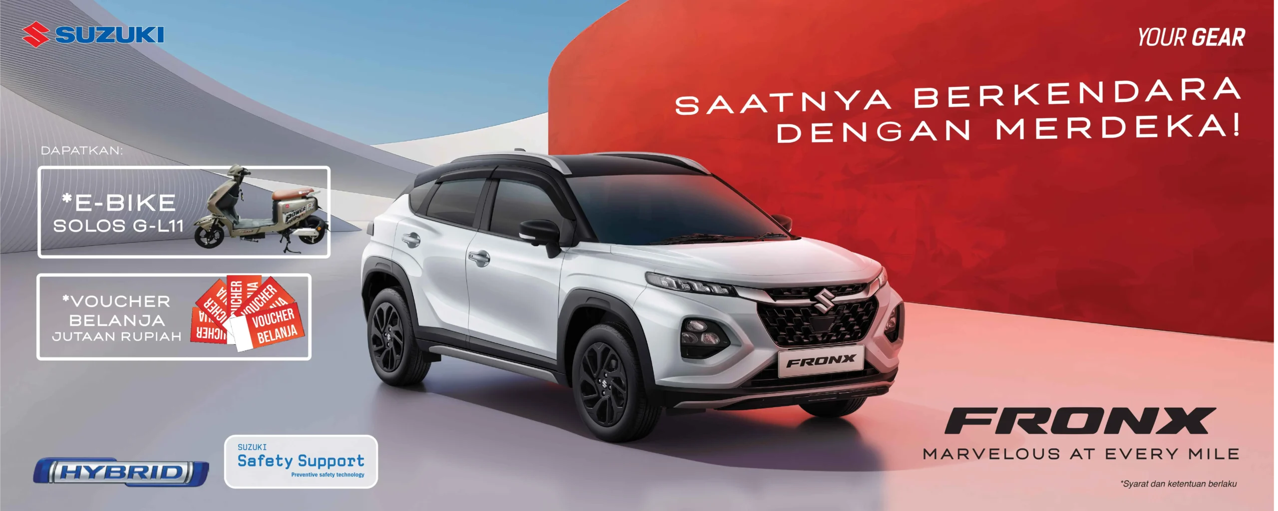 Spesial di bulan September, setiap pembelian FRONX berhadiah langsung : “E-Bike Solos G-L11” dan “Voucher Belanja Jutaan Rupiah”