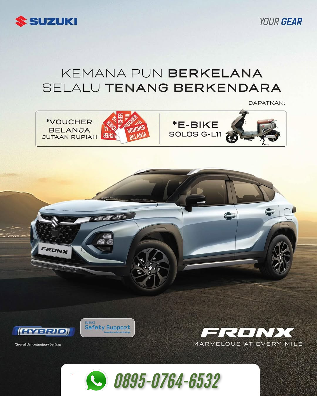 Suzuki FRONX hadir sebagai SUV compact dengan desain futuristik, teknologi Smart Hybrid, dan fitur keselamatan Suzuki Safety Support yang bikin perjalanan makin percaya diri✨